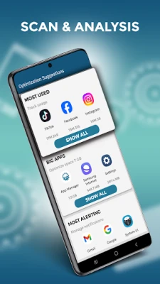 One-click phone analysis to make informed decisions: organize your storage, declutter unnecessary apps and files, and check the number of notifications, permissions, and time spent on each app.